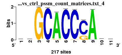 Command: peak-motifs -v 1 -title p300_heart_versus_limb_Blow2010 -i $RSAT/public_html/tmp/2012/07/02/peak-motifs.2012-07-02.203241_2012-07-02.203241_GH0tGg/peak-motifspeak_seq -ctrl $RSAT/public_html/tmp/2012/07/02/peak-motifs.2012-07-02.203241_2012-07-02.203241_GH0tGg/peak-motifscontrol_seq -markov auto -disco oligos -nmotifs 5 -minol 6 -maxol 7 -2str -motif_db jaspar_core_vertebrates tf $RSAT/public_html/data/motif_databases/JASPAR/jaspar_core_vertebrates_2009_10.tf -motif_db jaspar_pbm_mouse tf $RSAT/public_html/data/motif_databases/JASPAR/jaspar_pbm_mouse_2009_10.tf -motif_db custom_motif_collection tf $RSAT/public_html/tmp/2012/07/02/peak-motifs.2012-07-02.203241_2012-07-02.203241_GH0tGg/peak-motifs_custom_motif_db.tf -source galaxy -task purge,seqlen,composition,disco,merge_words,collect_motifs,motifs_vs_motifs,timelog,archive,synthesis,motifs_vs_db,motifs_vs_db,scan -prefix peak-motifs -noov -img_format png -outdir $RSAT/public_html/tmp/2012/07/02/peak-motifs.2012-07-02.203241_2012-07-02.203241_GH0tGg