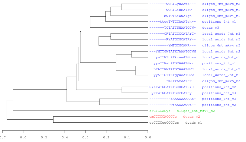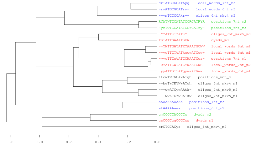 Goal: clustering a set of partly redundant motifs discovered by various algorithms (RSAT peak-motifs, MEME-ChIP, HOMER).